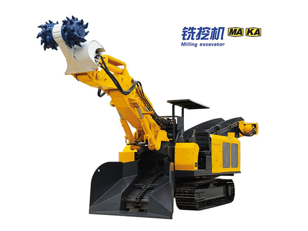 This machine is equipped with quick coupler, and the bucket and milling head are interchangeable during rock tunneling.After blasting, the digging bucket is used to load the slag, realized the purpose of one machine for dual use.which is driven by a high-torque hydraulicimported from Germany.The main hydraulic parts adopt a spur gear gearboxmotor to ensure that the milling head can cope with more severe high-load working conditions. This machine is eouippewith internal spray and high-pressure external spray device, which has good dust extinguishing effect.Due to the large weight of the milling head, the whole machine adopts the design concept of super structural parts toensure that the whole machine has sufficient weight. and the body is stable when cutting rocks. imoroving efficiencyIt adopts the rotary table structure of the TBM, the quality is stable and reliable.
